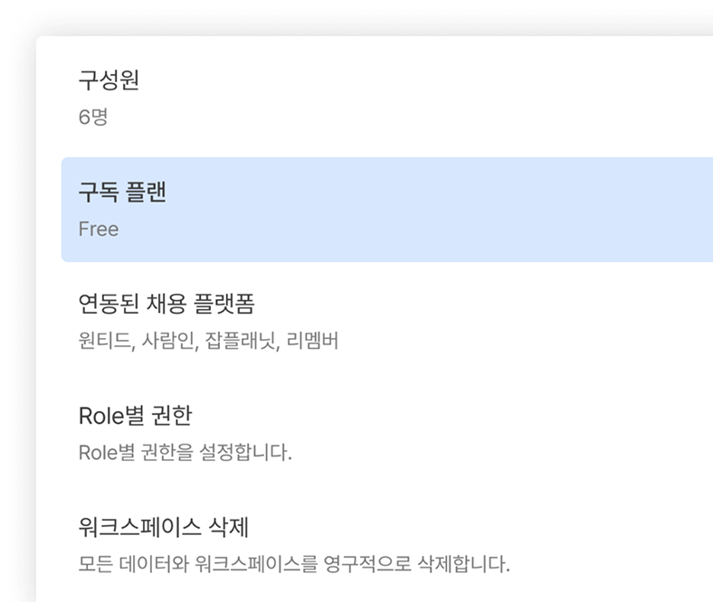 채용 전용 워크스페이스를 생성하고 역할과 권한을 설정합니다.