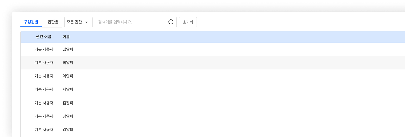 구성원 초대/내보내기, 역할별 권한 부여 · 수정